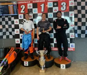 1st: Simon Johnstone finished off on the top step of the podium following a dominating display. With 2 race wins and a 2nd place finish going hand in hand with a fastest lap bonus in Heat 3, Simon certainly made a statement during Round 2. He finished the day with a total of 37 points and takes top spot in the WKRKC Summer Series.