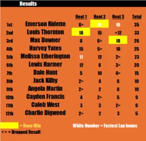 3rd: Max Downer completed the top 3 for Round 3 after a race win. Some good consistent driving from Max meant he ended up on a respectable 26 points after the 3 races.