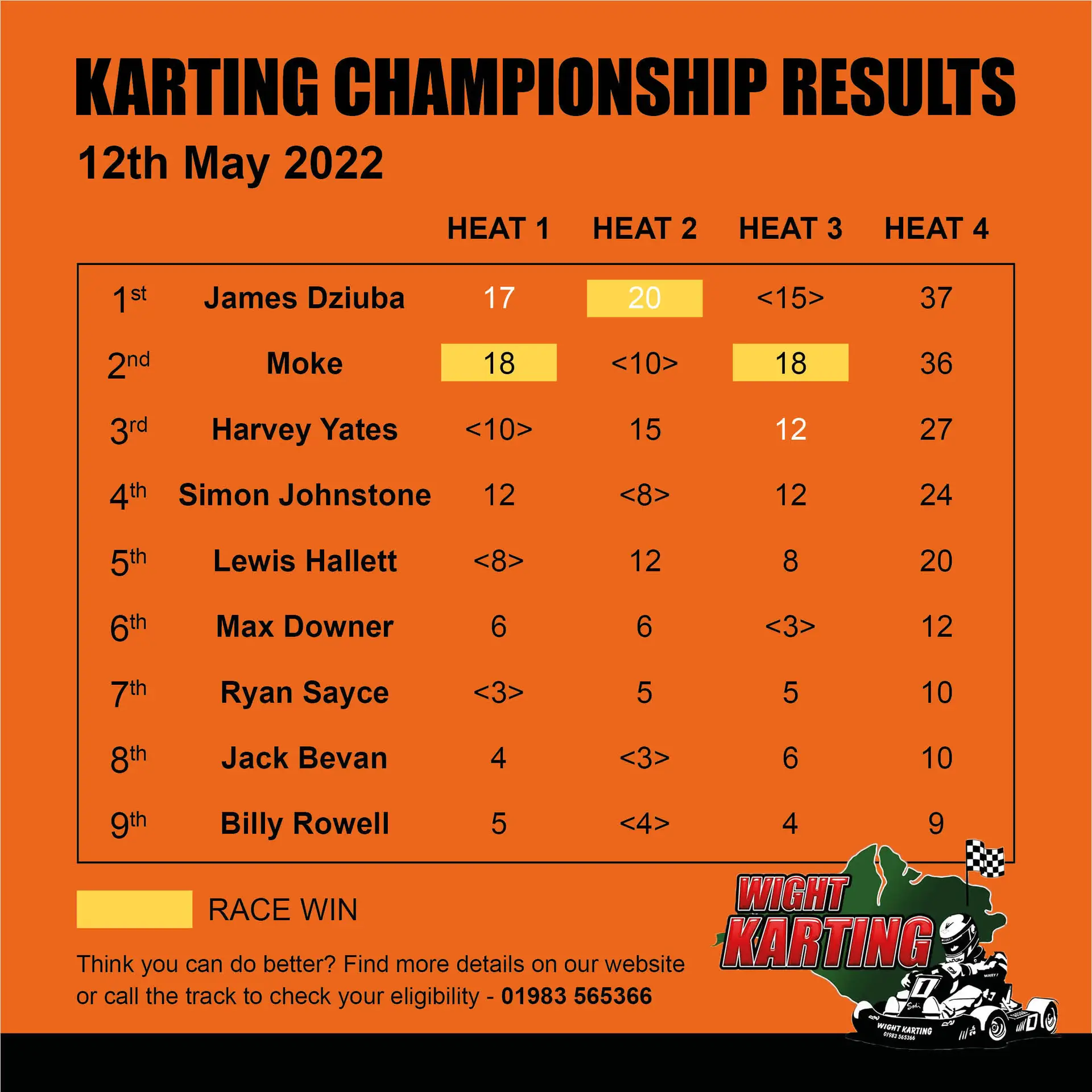 Racing Consists of 3 heats being run over the night, drivers had to show their skills in race situations, starting the races from different positions to get a total score based on their two best results of the night.