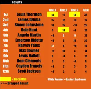 3rd: Simon Johnstone lost ground in the Championship to Louis after claiming 25 points in the Championship. A solid drive from Simon however, who claimed a second and fourth place finish. With 10 points now separating Simon and Louis, is there any chance Simon can reclaim his place top the Championship on the final day?