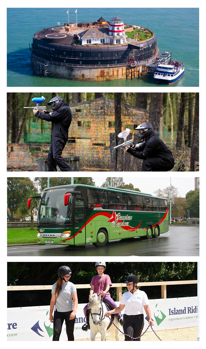 - A short 5 minutes walk to Easthill Road Bus stop catching the Southern Vectis No. 8 Bus to St. Helens Causeway using a ‘Day Rider’ ticket– £5 per head (on Groups of 5+ saver) and make your way across the sand dunes of the Causeway to the Tackt-Isle Adventure Activities, where we suggest 1/2 day on either the sea – where you can get wet-suited up for Kayak and Paddleboard (SUP) Games, or a dry-land option – a Speedy Scavenger Hunt and Bushcraft! With lovely beaches to explore you’re guided (when booking a larger group) to the amazingly beautiful Priory Bay. Everything you need is supplied by Ben and his team – just bring your sense of adventure!