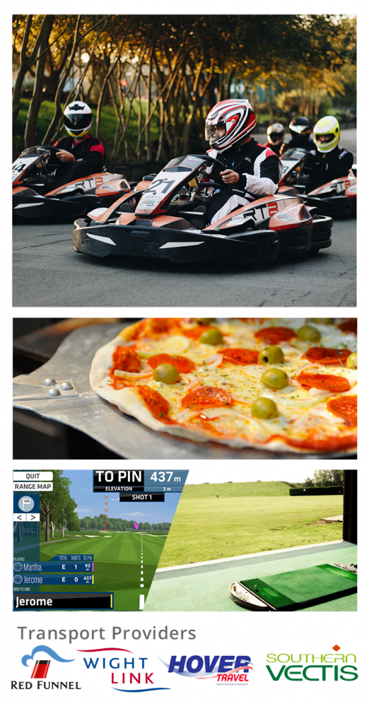 - Head to the bus station on Ryde Esplanade, travelling 10 minutes on the No 2 or 3 alighting at the Tesco Extra stop. Following signs to Wight Karting – nationally renown for their excellently technical outdoor 520m race track & a top action attraction on the Isle of Wight (Trip Advisor). Suit-up as a racing driver for a 2-hour motor sport extravaganza! Finishing Top on the Podium will get you medals or Trophies (group size dependent) and the biggest buzz for the least training on any sport – that’s a promise! Our La Babalu Licensed snack bar do coffees and a selection of bottled beers, or have one of our specialty Milkshakes.