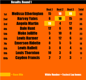 2nd: Harvey Yates – Harvey takes second place on the podium after a solid performance in Round 1. After only finishing 6th in the first race, Harvey then stormed to a race win and a second place in the following two races to finish the day with 39 points. Can Harvey narrow the gap to Melissa in Round 2?