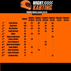 1st: Jack Goring once again took the title of round 4 to make it a clean sweep currently for this years WKRKC. Another impervious display from the young man totalling 38 points. Can anyone stop his dominance?